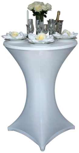 Stehtische mit verschiedenen Hussen, in Form und Farbe